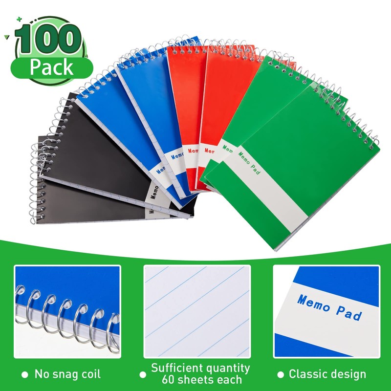 - Value Package: small mini note pads set includes 100 pad of 3 x 5 inch memo pads in 4 colors,a total of 6000 sheets; Sufficient quantity to meet your needs for different colors and occasions; You can use spiral notebook bulk yourself or share them with your family and friends