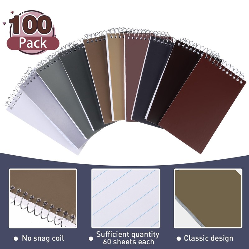 100 Pads Spiral Memo Book Wirebound Spiral Memo Pads 3'' x 5'' Small Mini Note Pads College Ruled Notebooks 60 Sheets/Pad Pocket Steno Book Top Bound Spiral Scratch Pad (Multicolored)