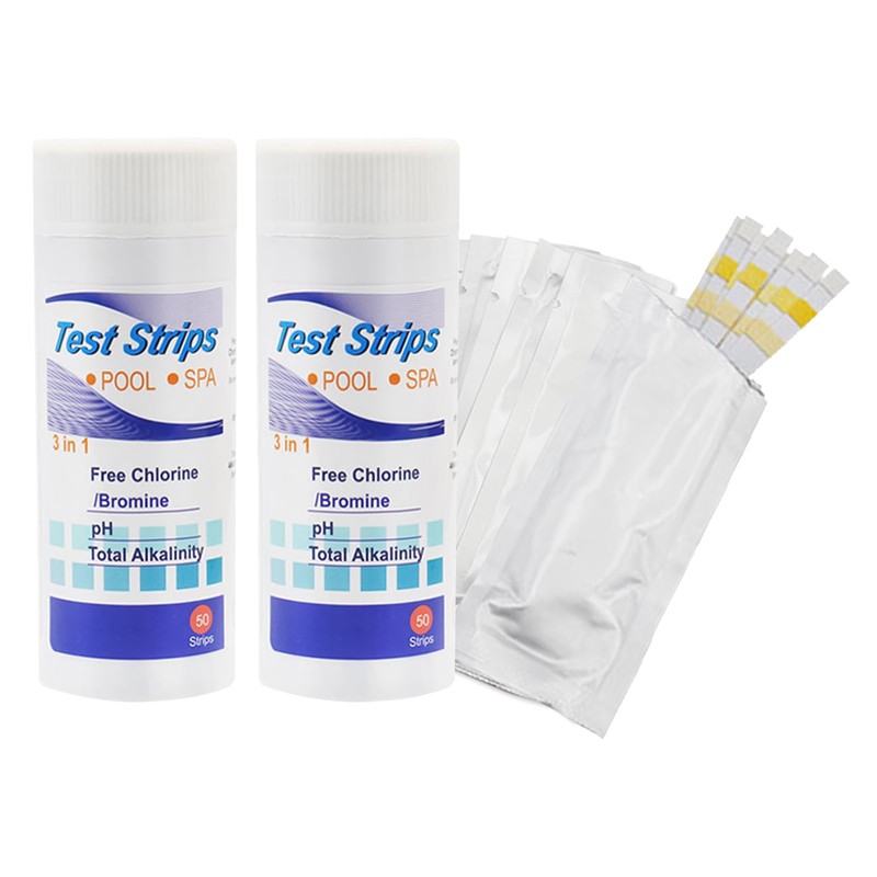 - Maintain a healthy, clean, and balanced water environment for your pool, hot tub, or spa with these Hot Tub Test Strips. This 3-in-1 water testing kit offers a quick and easy way to measure the pH, Total Alkalinity (TA), and Free Chlorine & Bromine levels of your water. With 100 strips included, this set ensures you have enough for regular testing, ideally twice a week, to keep your water in top condition.