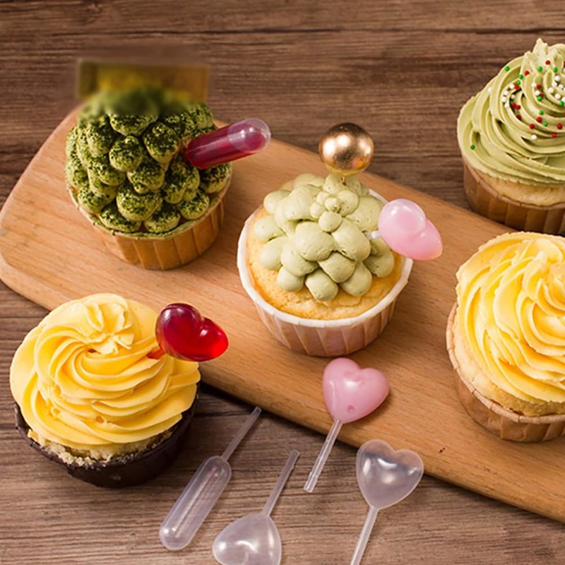 100 Pcs 4 ml Clear Heart Shape Liquid Pipettes Plastic Squeeze Transfer Pipettes Cupcake Pipettes Dropper Food Liquid Dropper Injector