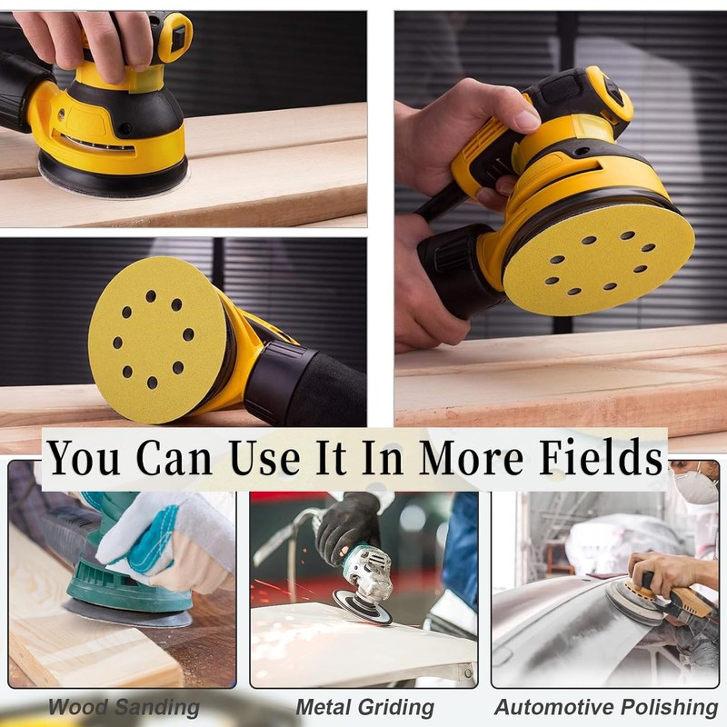 - Compatible with 5-inch random orbit sander. Ideal for grinding and polishing wood, metal, plastic, painted surfaces and more
