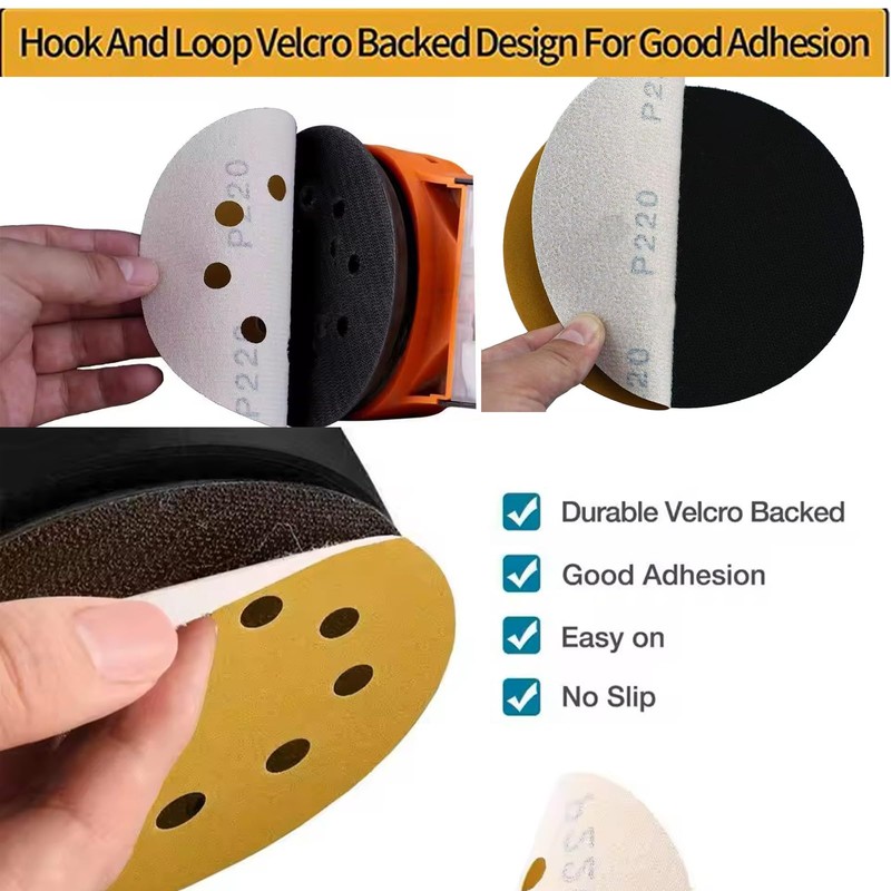 - Pre-punched 8 holes for effective dust collection. Velcro design for quick and easy installation and removal of sandpaper. Maintains strong adhesion and won't fall off during use