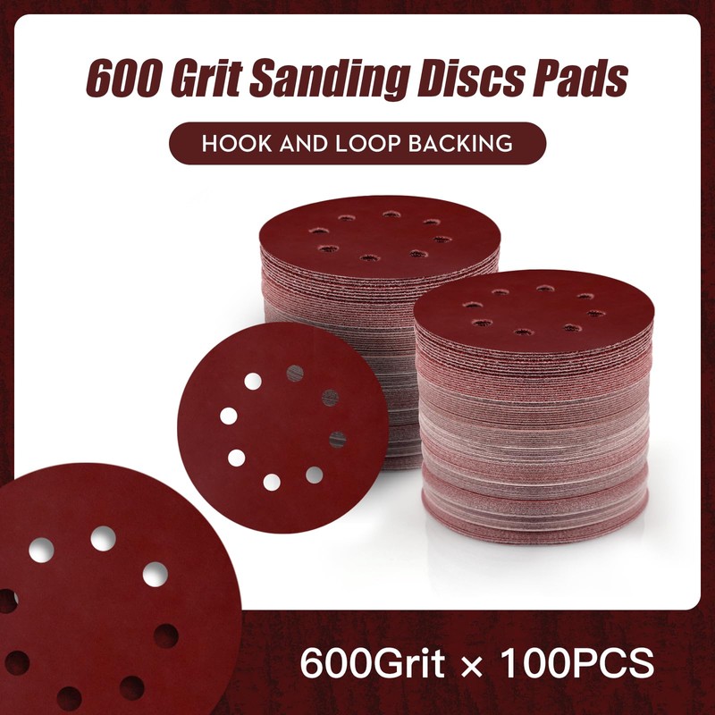 - Quantity:100pcs 600 Grit 5-inch 8-hole hook and loop sanding discs