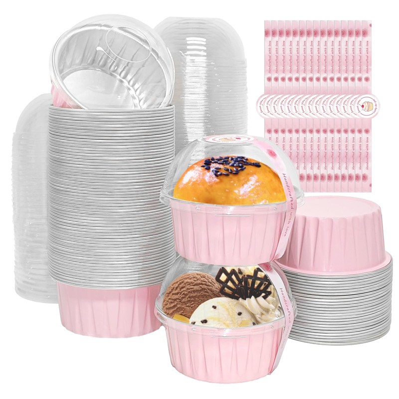 - Easy to Store and Carry: These baking cups with lids can protect your desserts from destruction. These aluminum cups easy to carry and stack, you can easily take the cakes out the door without cupcake boxes