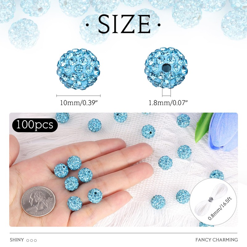 - ADEQUETE QUANTITY -- 100 pcs Aquamarine rhinestone beads and we match with an elastic line in 5 m long to satisfy your crafting and sharing needs. 100 pcs can make about 4 bracelets solely with rhinestone beads (if 25 pcs for a single string)