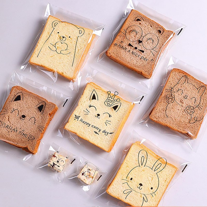 - Design: These OPP bags are transparent, with cute animal designs printed on the surface. There are two styles to choose from. The first style features a design with three types of cat faces (about 33 bags each). The second style includes designs of rabbits, bears, and cats (about 33 bags each).