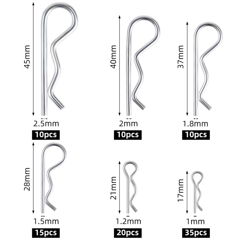 Features: 【High Quality】These R pins are made of high-quality carbon steel, zinc plated for durability and corrosion resistance. They feature a smooth surface without burrs. The high hardness and strong spring tension make the pin resistant to detachment during operation.