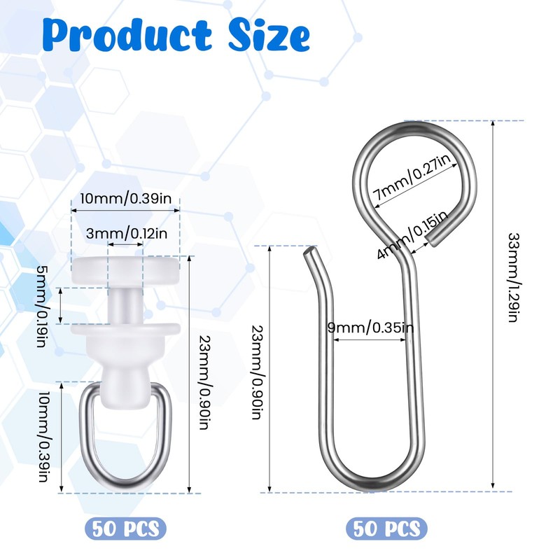 Packing List: 50 Pcs Curtain Track Hooks (50 Pcs Pulleys + 50 Pcs Hooks)