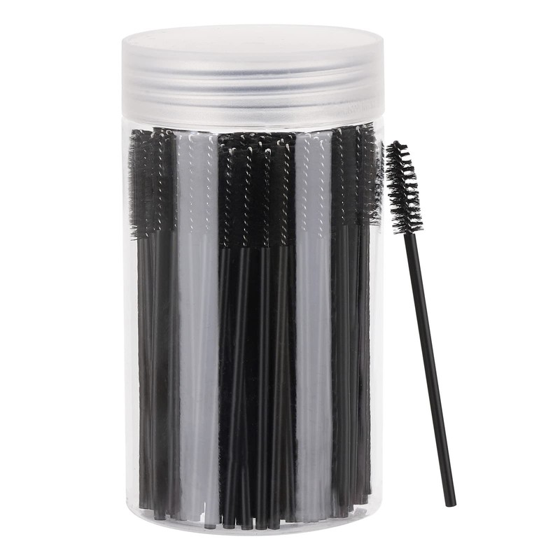 100 Pcs Disposable Mascara Wands, Eyebrow Spoolies Brush for Eyelash Extensions, Lash Brushes with Container (Black)
