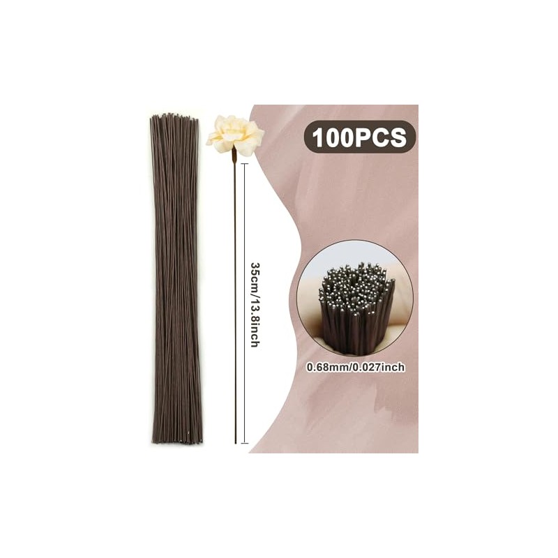 100 PCS FIVEIZERO 26 Gauge Beown Floral Wire Stems for Artificial Flower Making, Florist Wire for Crafts, Alambre para Flores for Wreaths and DIY Projects