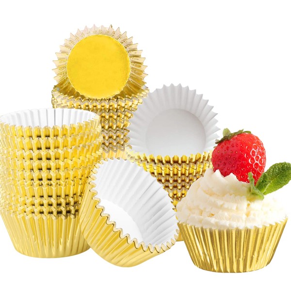 100 Pcs Gold Cupcake Cases, Metallic Foil Lined Muffin Wraps Cases for Baking-Disposable Baking Cups on Weddings Birthdays Party