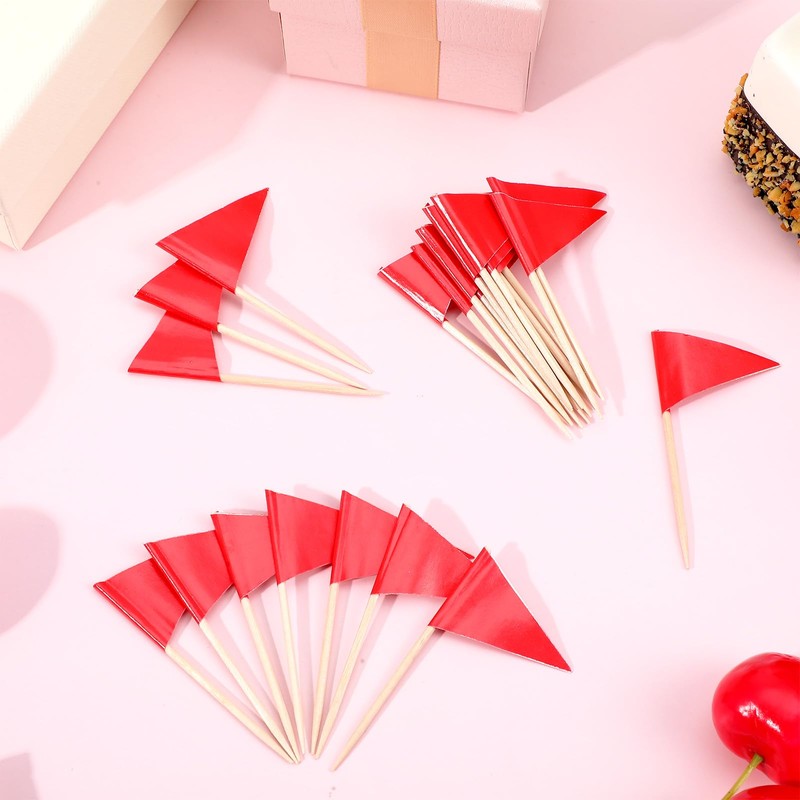 - Super Value 100 Large Capacity Pack: Each pack contains 100 red decorative flags, which meets the needs of large parties and bakeries for batch use. It is a cost-effective choice for dessert chefs, party planners and baking enthusiasts
