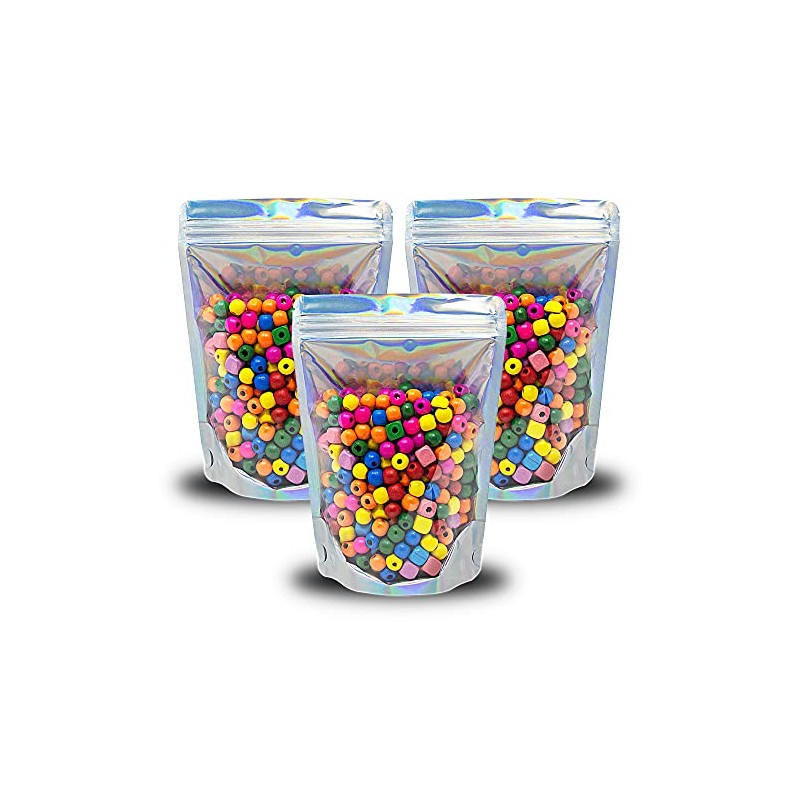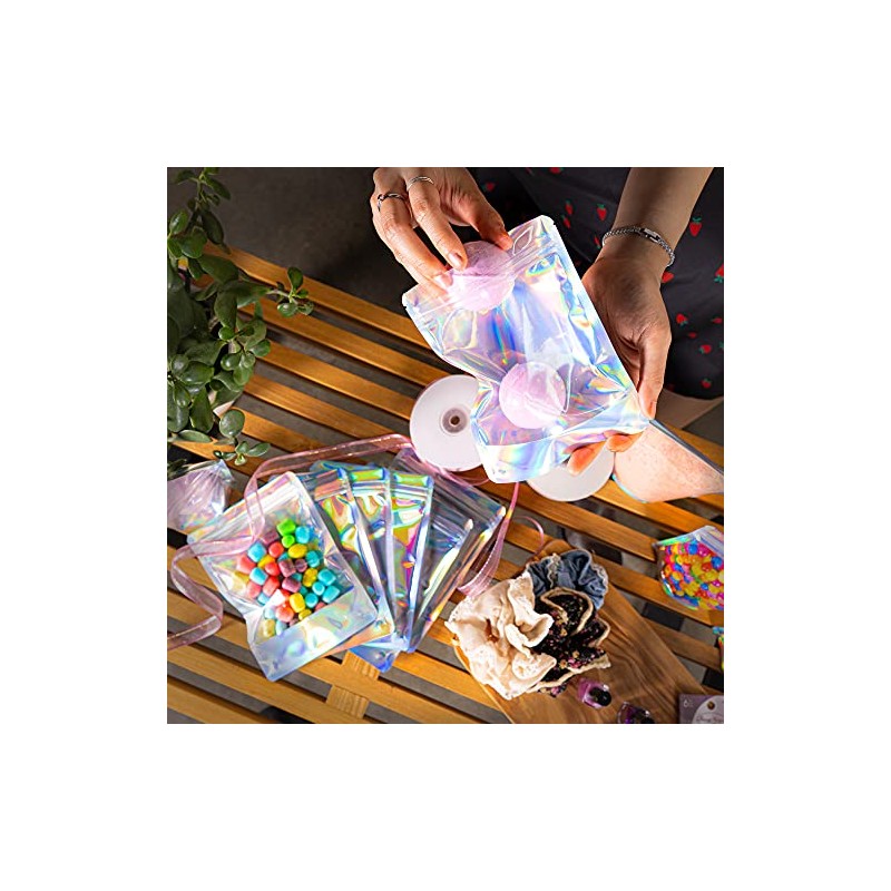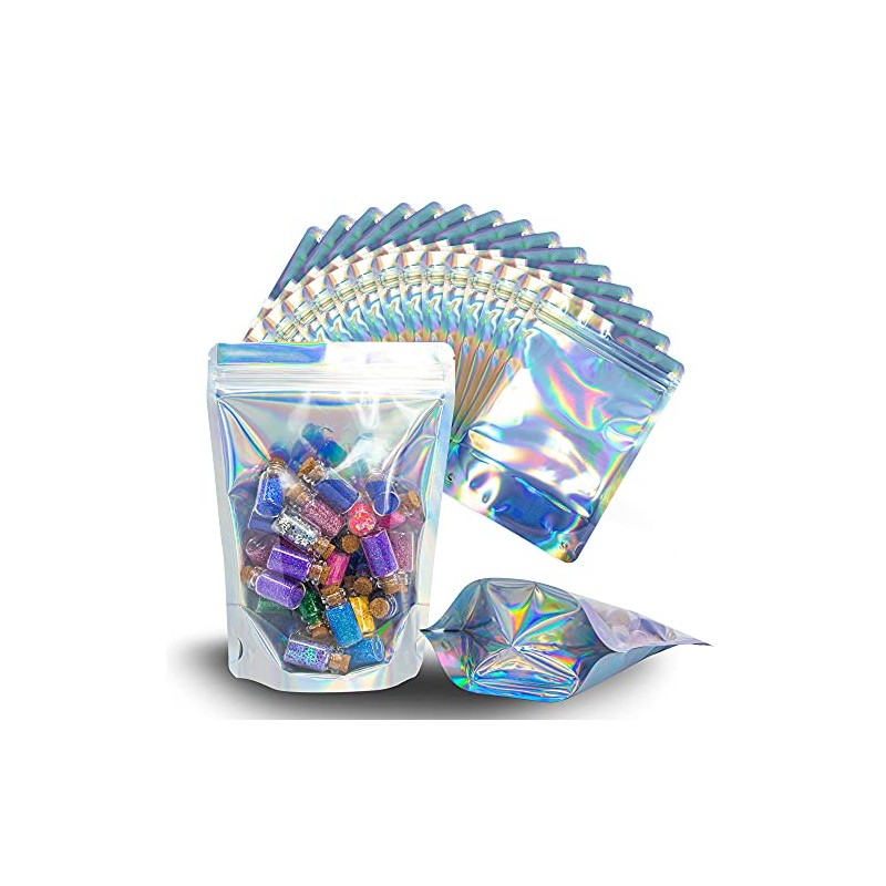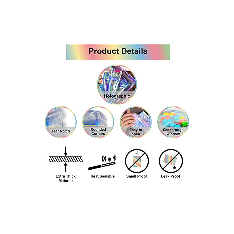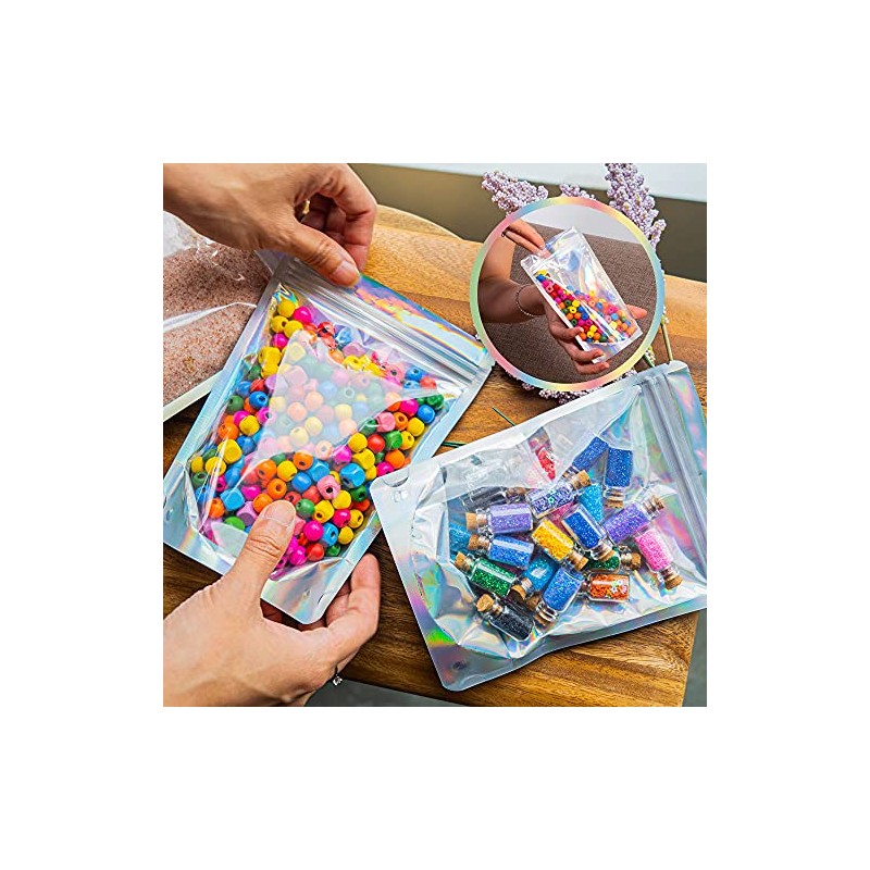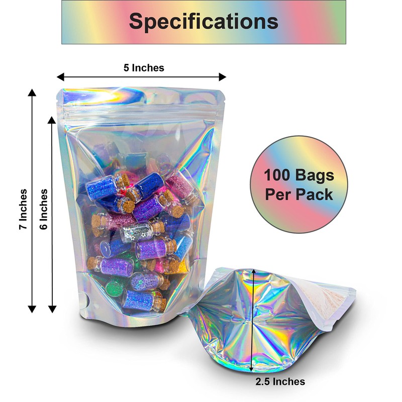 100 Pcs Holographic Resealable Mylar Bags - 5x7 Inch Smell Proof Ziplock Heat Sealable Stand Up Pouches Parties Small Business Packaging - WaldOaks