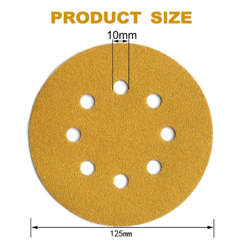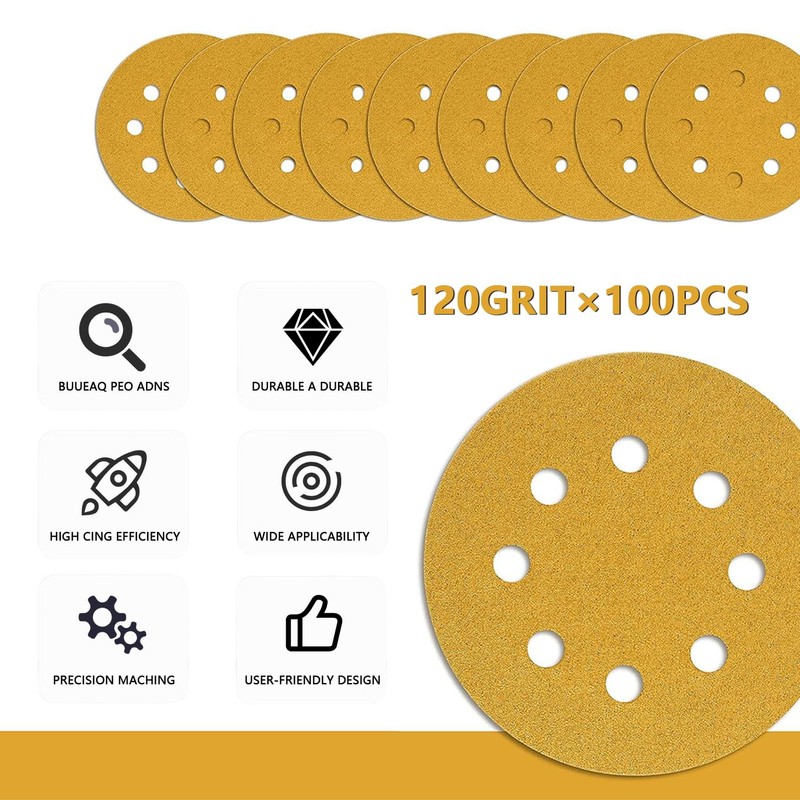 - 100 pcs 5-inch 8-hole hook and loop sanding discs(120 grit)