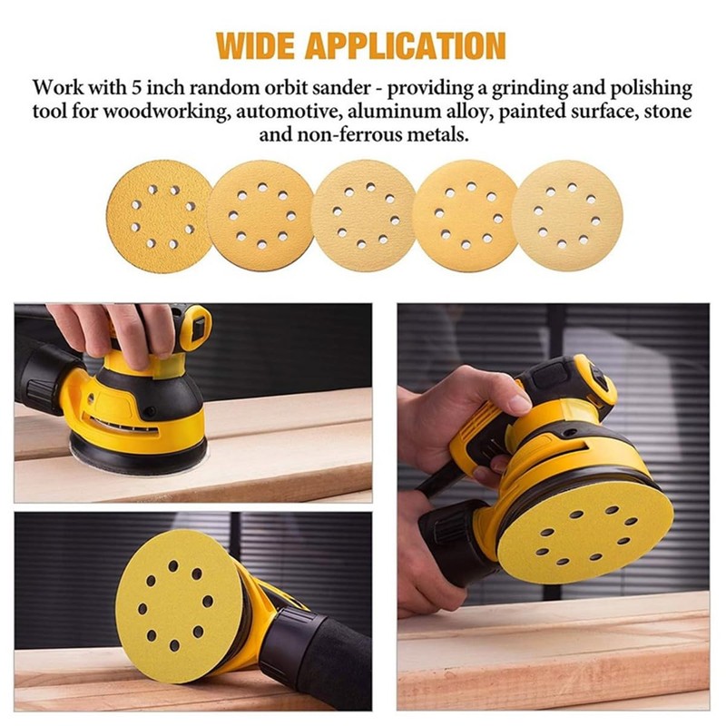 - Easy to Use and Versatile: These 5-inch sanding discs allow for quick sandpaper changes. They are pre-punched with 8 holes for effective dust extraction and are compatible with universal orbital sanders, making them ideal for both woodworking and metalworking.