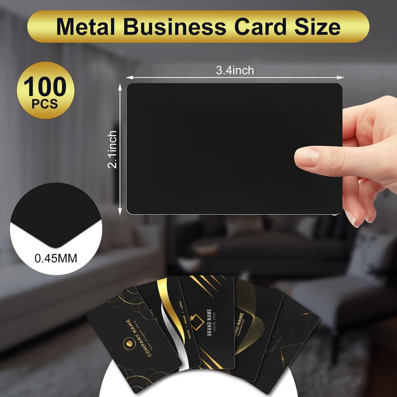 - 📌【Metal Card Size】100 Blank Metal Business Cards and 100 Sleeve, 0.45mm thickness, size 3.4 x 2.1 inches, thicker than ordinary aluminum business cards.