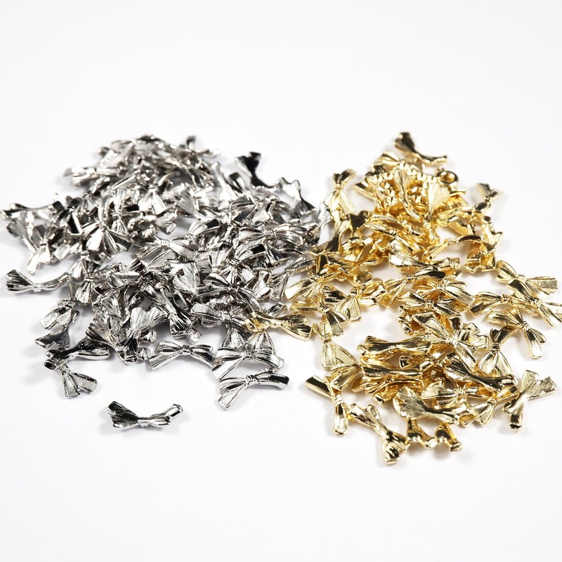 100 pcs Nail Art Metal Bow tie Accessories Charms Gold and Silver 3D Bow Nail Art Wing & Butterfly Bowknots Decoration Parts Jewelry for Manicure