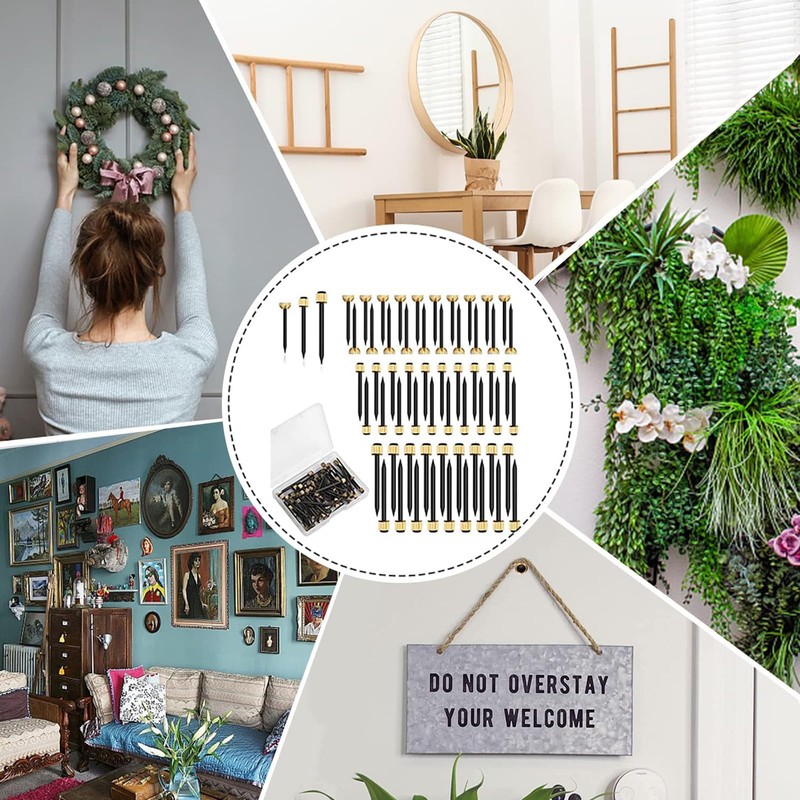 - ✅【Great Material】These picture hooks made with iron needle handles and brass head, which is durable and not easy to bend. The pins surface is black after special treatment process.
