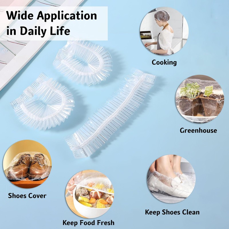 - [ELASTIC PLASTIC SHOWER CAPS] The disposable shower cap is made of high quality plastic and will not tear easily. The double elastic provides a tight fit and does a very good job of keeping your hair dry.