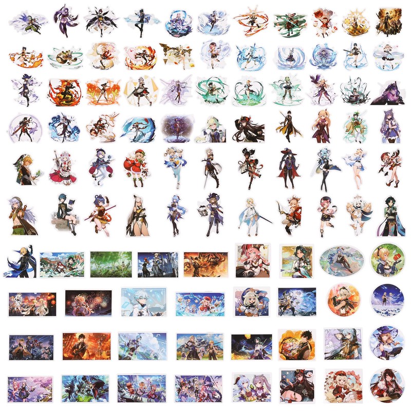 [100 PCS]QYZHIZ Mixed Sticker, Genshin Impact Game Sticker, Yuanshen Game Sticker, Colourful Stickers, Waterproof Stickers, for Laptop, Skateboard, Water Bottle, Computer, Skate, Phone, Bike, Guitar.