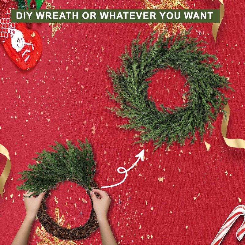- 【GARLAND CHRISTMAS DECORATIONS INDOOR】: The Christmas real touch pine branches are made of shapeable wire, the leaves are soft and naturally droopy, and the Christmas stems can be adjusted at will. Whether it is used for vase, christmas garland or cedar garland decoration, the Christmas tree filler branches can bring more natural and vivid effects to your Christmas decorations indoor