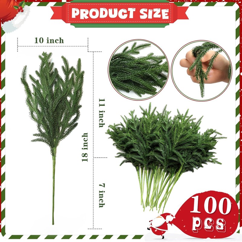 - 【100 Pcs REAL TOUCH CHRISTMAS STEMS】: Like the real touch pine needles in nature, artificial pine branches give people a lifelike beauty, Christmas greenery stems replicate the original deep green, lush, and fill your room with a happy Christmas holiday atmosphere