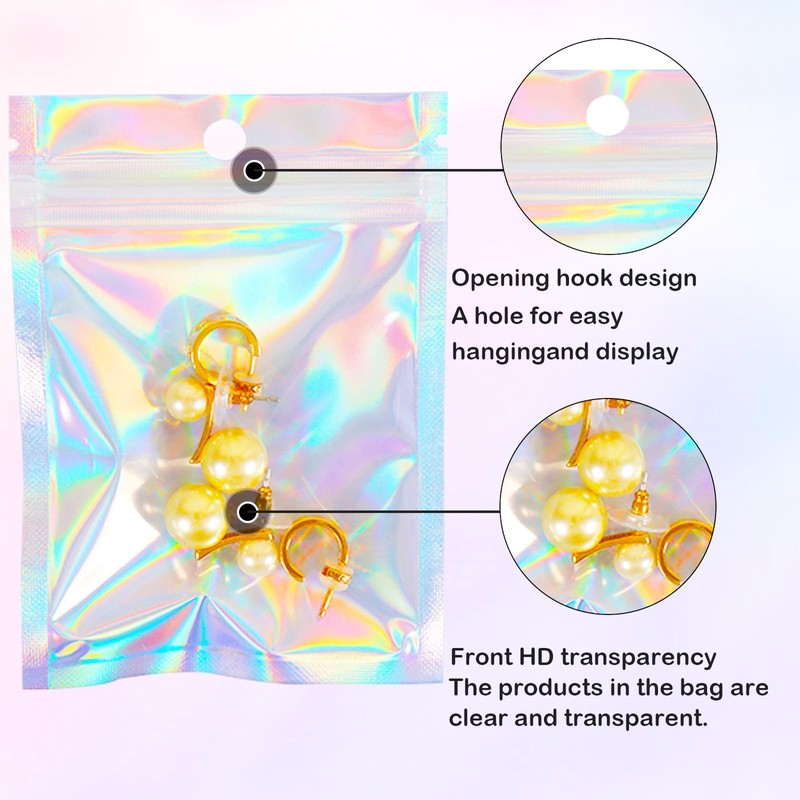 100 pcs Resealable Holographic Self Sealing Bags with Zip 4x6inch Reflective Stand-Up Pouches for Gift Jewellery Sample Storage Candy