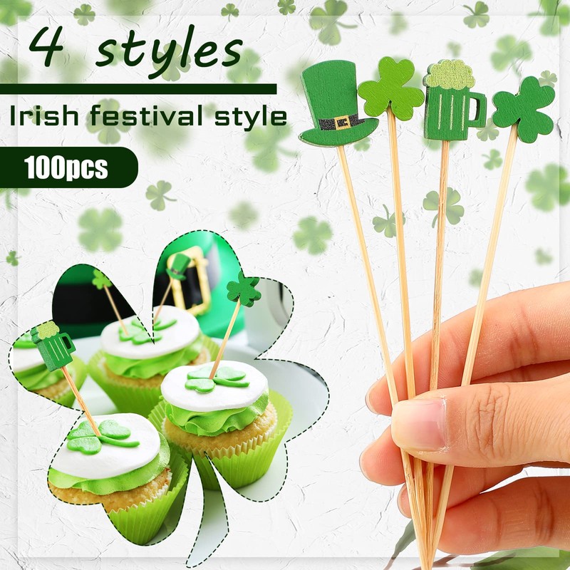 - Festive and Ample Combo: you will receive 100 pieces of the fruit sticks for party in the St Patrick's Day themed designs, with 4 adorable styles, respectively, the light green shamrock, the dark green shamrock, the Irish green hat, and the Irish green beer, 50 pieces for each style, the festive and Abundant combo can satisfy your various demands during the St Patrick's Day, and you can also share them with others