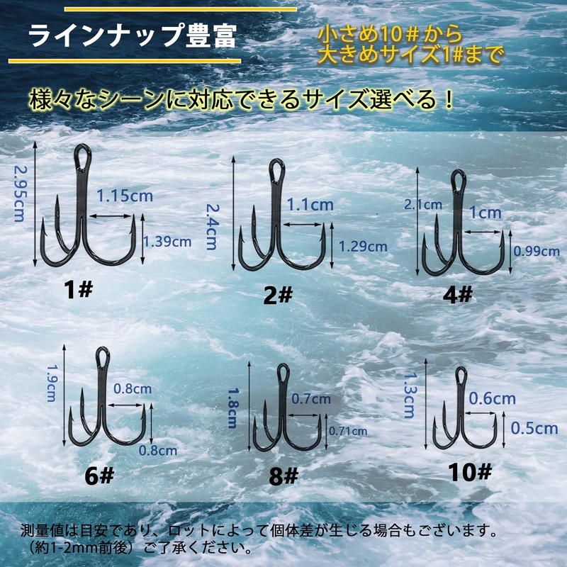• Overwhelmingly high cost performance: The treble hooks come in a large quantity of 100 pieces for an overwhelming low price. Since it is a consumable product, you can use it without worrying about rust, loss or ratching. Recommended for beginners and those who thought "100 yen jigs with premium treble hooks that are not lost."