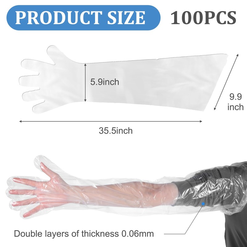 - 【Size Details】- 35.5 inches long, the full arm length gloves disposable are long enough for extra coverage purposes; you don't have to worry about your arms touching anything that may get dirty, keep your clothes and body clean and safe, designed for adult use.