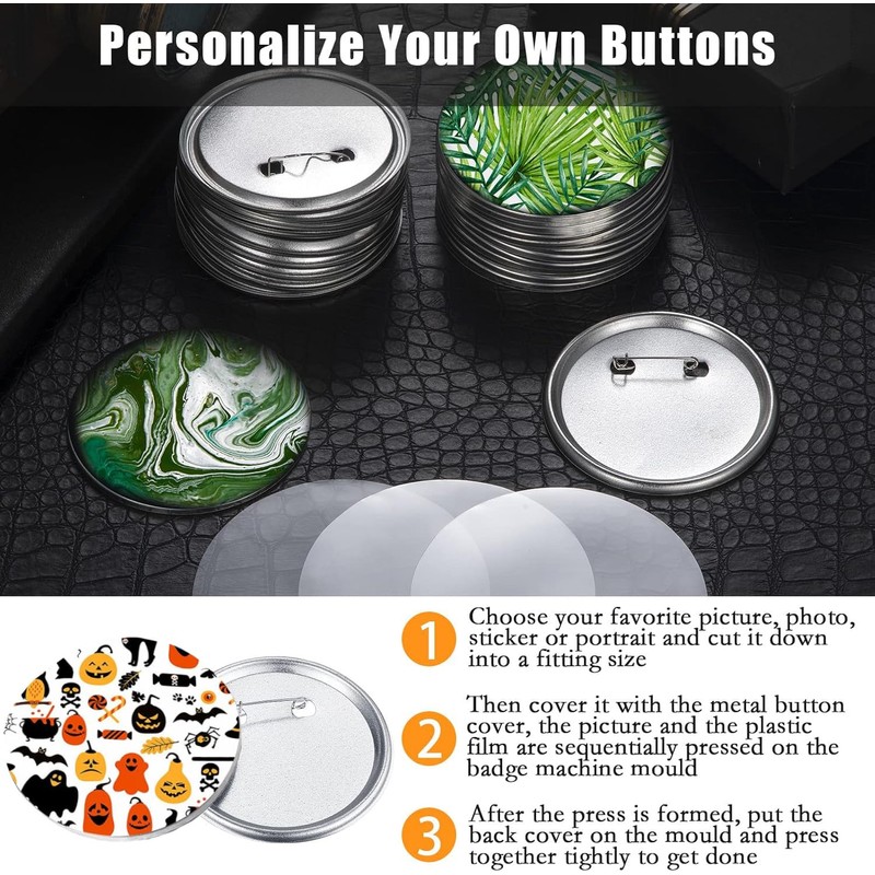 • Package includes: can receive 100 sets of round button parts supplies, including 100 piece of metal shell, 100 piece of metal back cover with pin and 100 piece of transparent film in each set, sufficient quantity to make create personalized buttons for yourself, friends, classmates, colleagues or family members