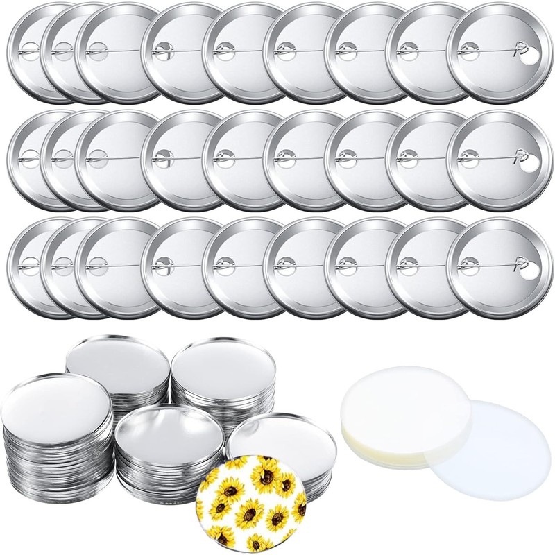 100 Pieces Blank Button Making Supplies Round Badge Button Parts Metal Button Pin Badge Kit for Button Maker Machine, Including Metal Shells Back Cover and Clear Film (Tinplate,2.28 Inch)