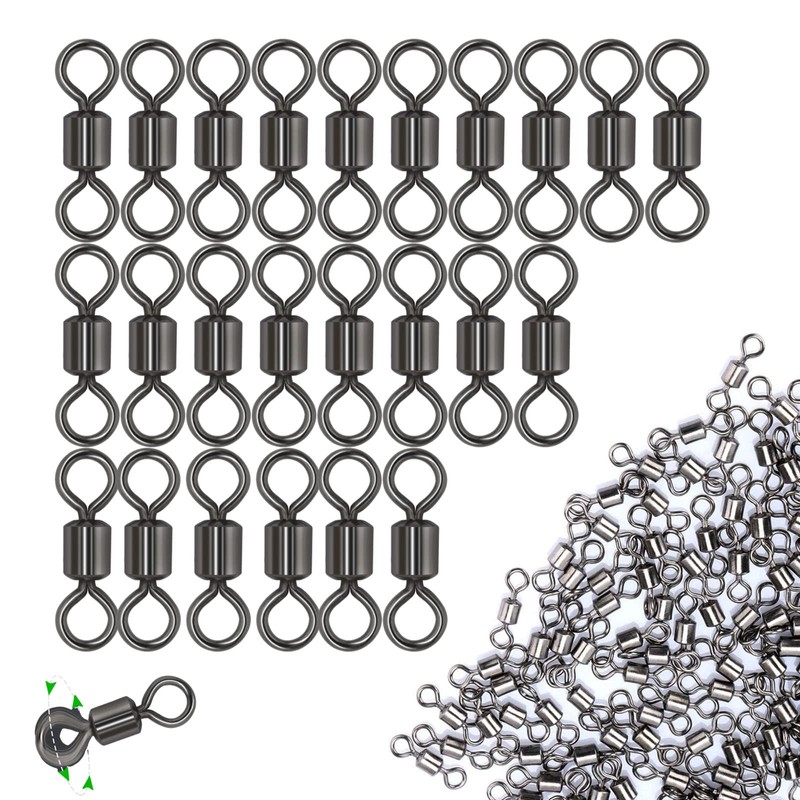 100 Pieces Fishing Rolling Swivels Stainless Steel High Strength Fishing swivel With Solid Rings Tackle Accessory Connectors for Saltwater of Freshwater