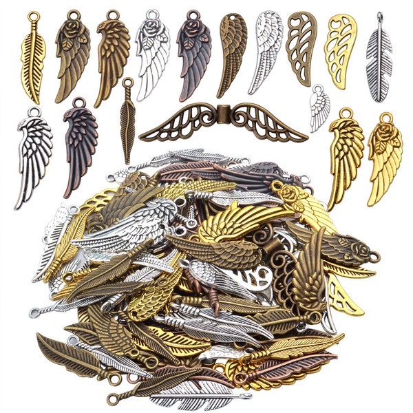 100 Pieces Mixed Colors alloy Angel Feather Wings Charms Pendants Jewelry Findings for DIY Necklace Bracelet