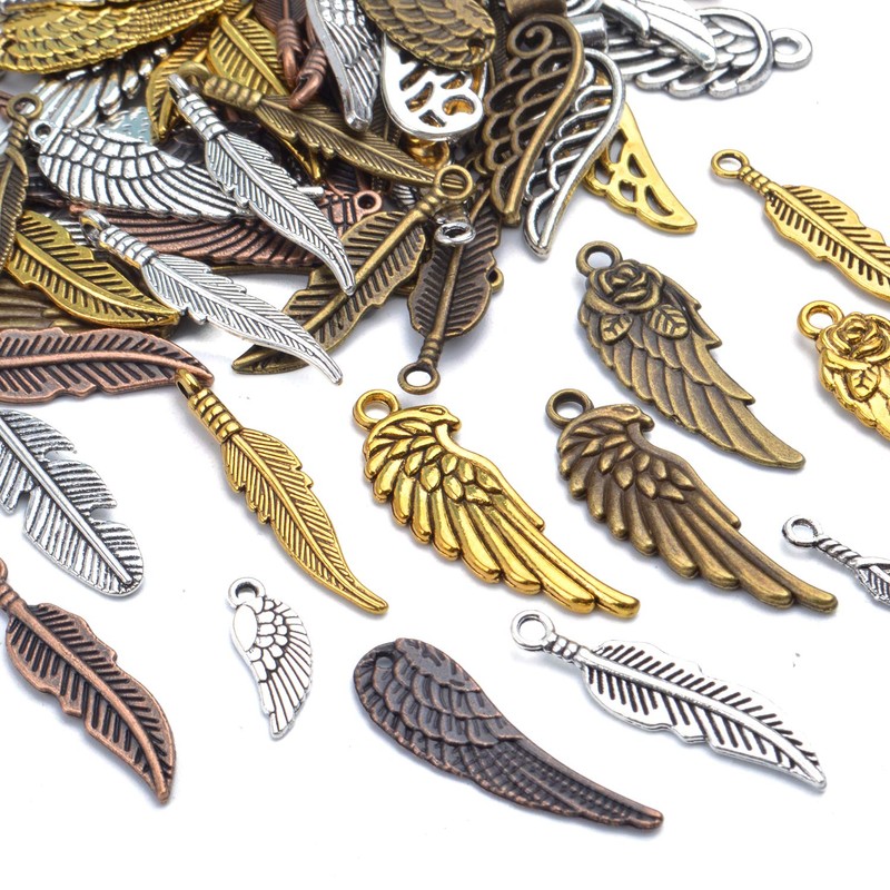 100 Pieces Mixed Colors alloy Angel Feather Wings Charms Pendants Jewelry Findings for DIY Necklace Bracelet