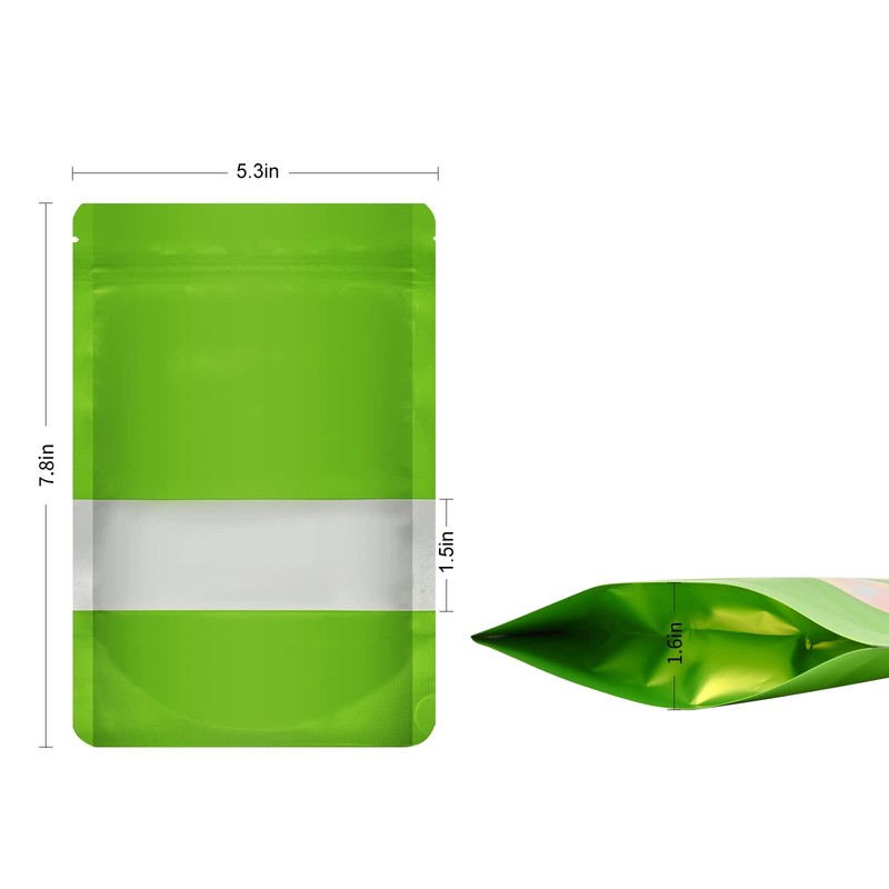 100 Pieces Smell Proof Mylar Food Storage Bags, Resealable with Clear Window, Stand-up Foil Pouch, Self-Sealing Supplies (Green, 5.3 x 7.8 Inch)