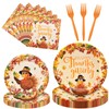 Happy Thanksgiving Cartoon Turkey Pattern Disposable Paper Plates, Napkins, and Forks Dinnerware