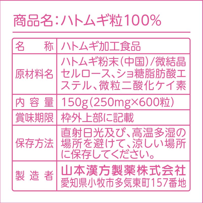 良質のはとむぎを微粉末とした素材を、召し上がりやすい粒状に仕上げました。たっぷり召し上がれる、大容量600粒入り。