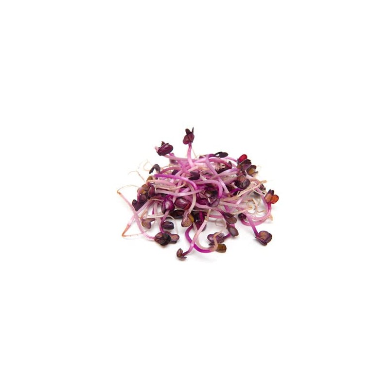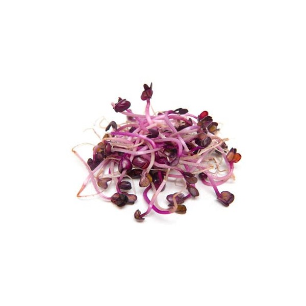 Country Creek LLC Brand- Rambo Radish- Mildly spicy, dark-purple stems and leaves. Flavor is mildly spicy, not harsh. Due to its fast growth it can be harvested as early as 6 days, assuming you have exposed it to light on day 3. These radishes are great to spike the flavor of salads, soups, sandwiches, omelettes.