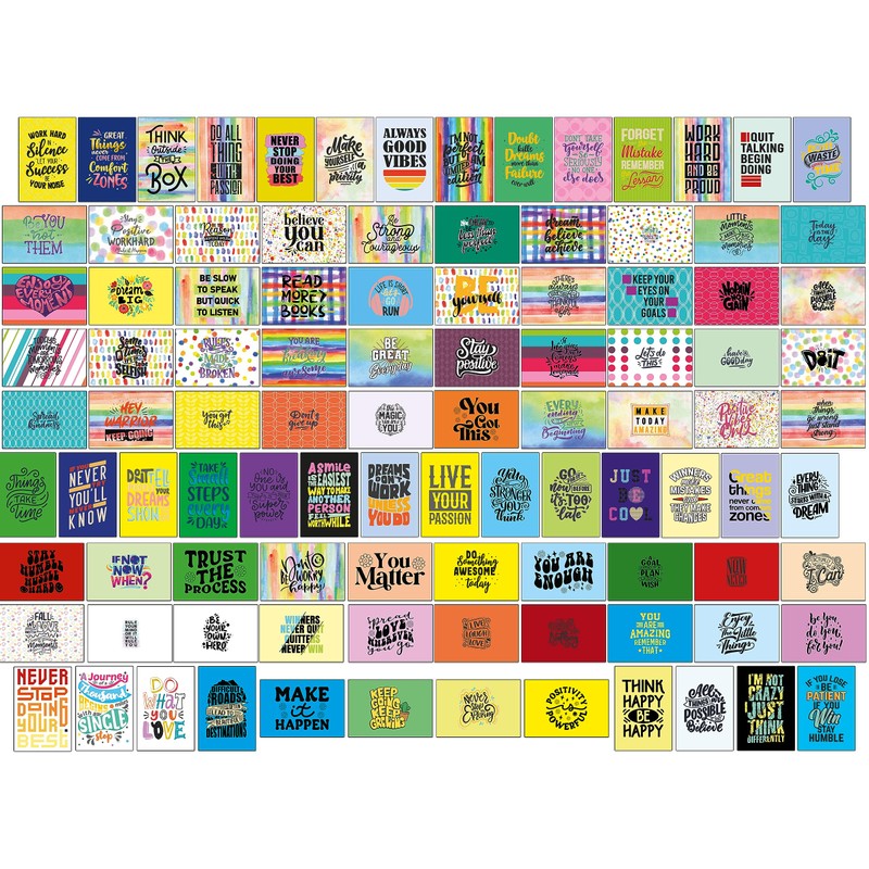 - 100 assorted colourful cards with motivational sayings on the front. (In English)