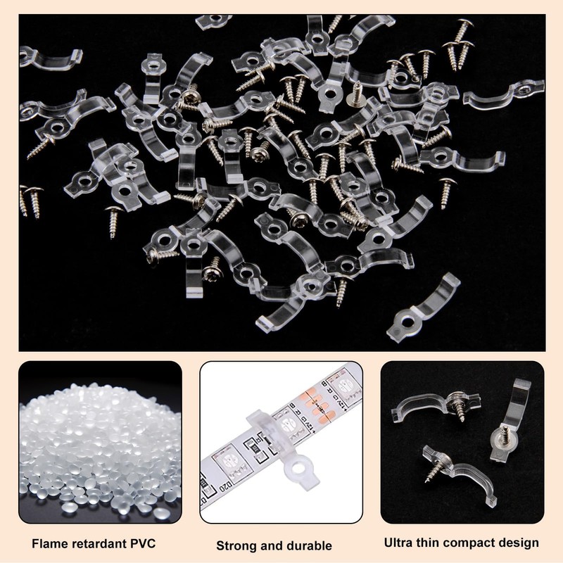- 【Package Includes】you will get 100 sets led strip light fixing clips, suitable for 10mm wide light strips