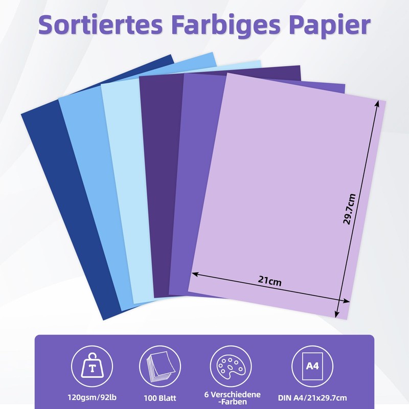 100 Sheets - Blue Series 120 g Coloured Coloured Paper A4 6 Colours Craft Paper Colourful Paper Printer Paper Copy Paper Origami Paper