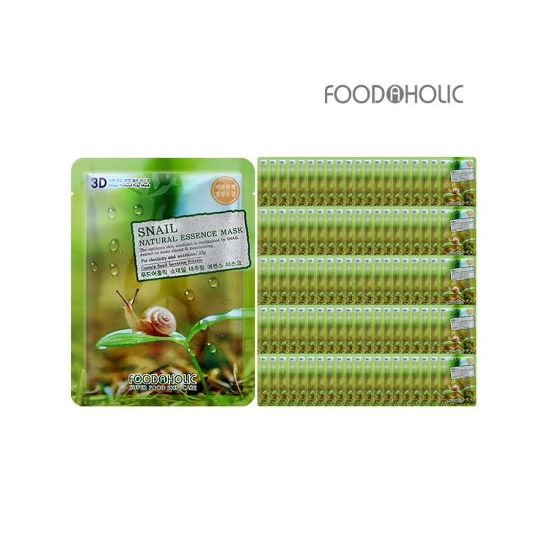 (100 sheets) Foodaholic 3D Snail Natural Essence Mask Pack / (100매)푸드어홀릭3D 달팽이 내추럴에센스 마스크팩