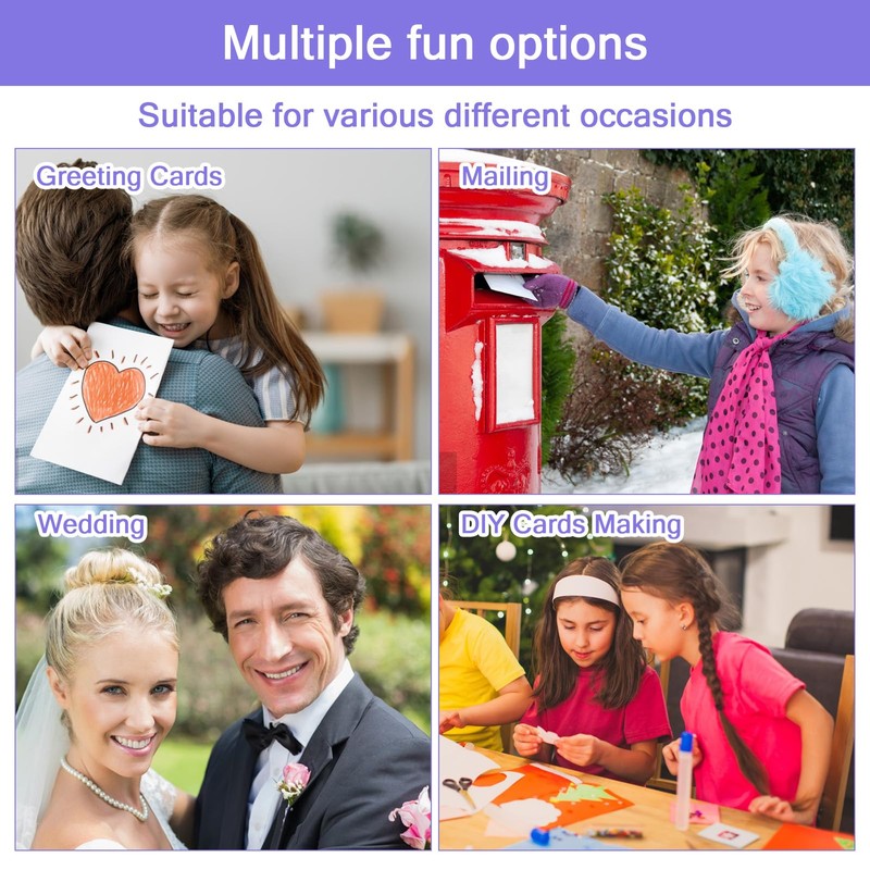 Our card stock uses double-sided environmentally friendly thick card paper, which is durable, delicate and well-balanced. It is neither too rough nor too smooth, and has good ink adhesion. It is often suitable for making gift tags, invitations, cards, wedding invitations, bachelor party games, bridesmaid proposals, Mother's Day crafts, birthday invitations, etc.