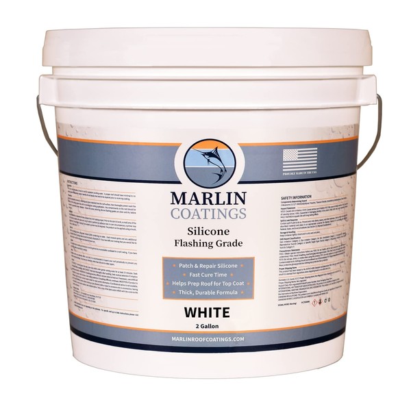 100% Silicone Roof Patch – Prevent and Repair Leaks – Complete Waterproofing – Easy Trowel or Brush Application… (2 Gallon, White)