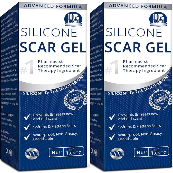 100% Silicone Scar Gel 2 Pack: 2 x 1.06oz Tubes for Surgical Scars, C-Section, Acne, Keloids, Burns, Stretch Marks – Advanced Scar Treatment for Old & New Scars