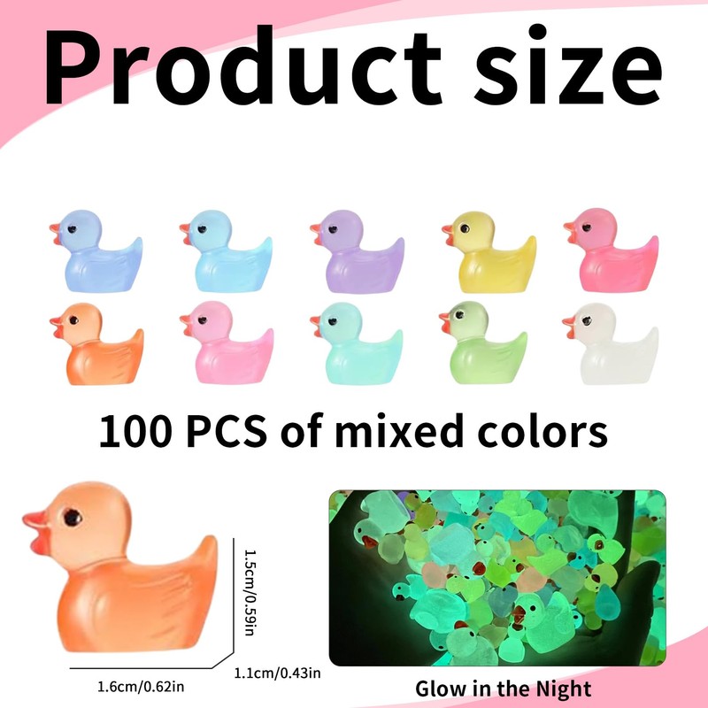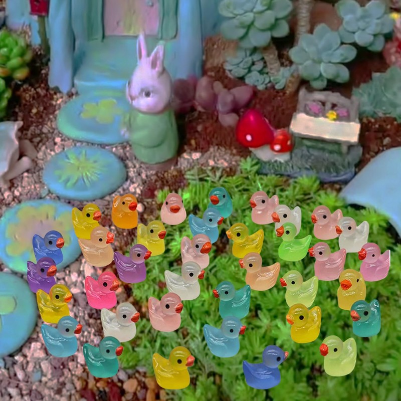 100 Stück Mini Enten,Leuchtende Kleine Enten,Mini Harz Figuren,Miniatur Resin Ducks,Tierfiguren Minienten für Landschaft Streudeko,Wasserspielzeug Topfdekoration,Miniaturgarten DIY-Projekte Decoration