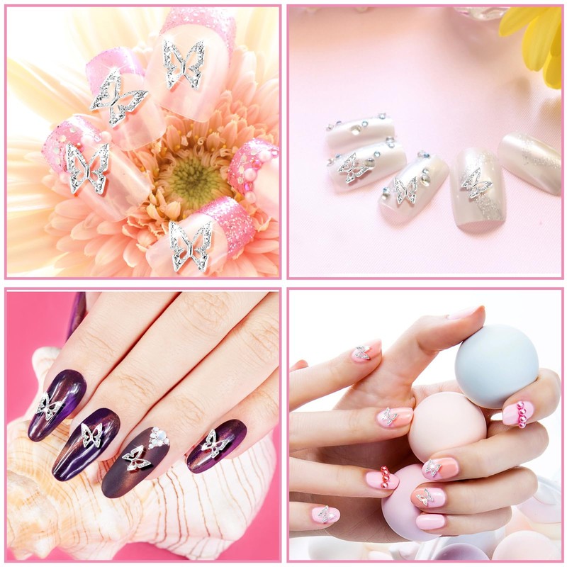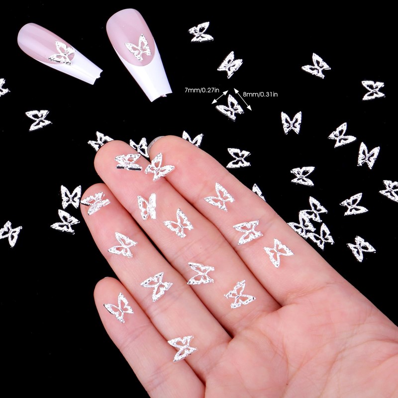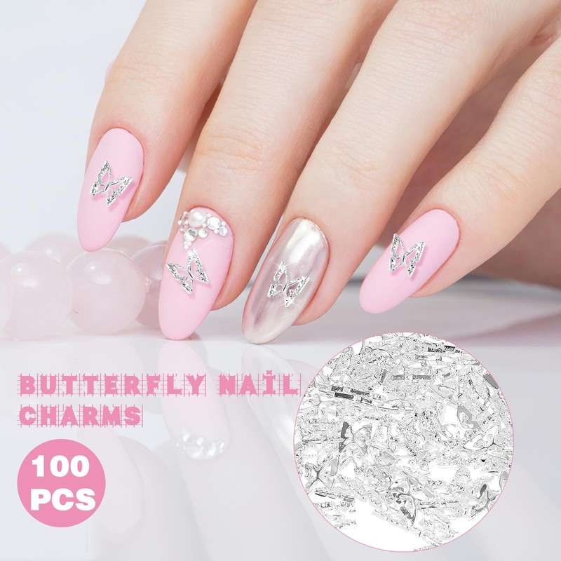 100 Stück Schmetterling Nail Charms Silber 3D Schmetterling Nagel Charms Y2K ...