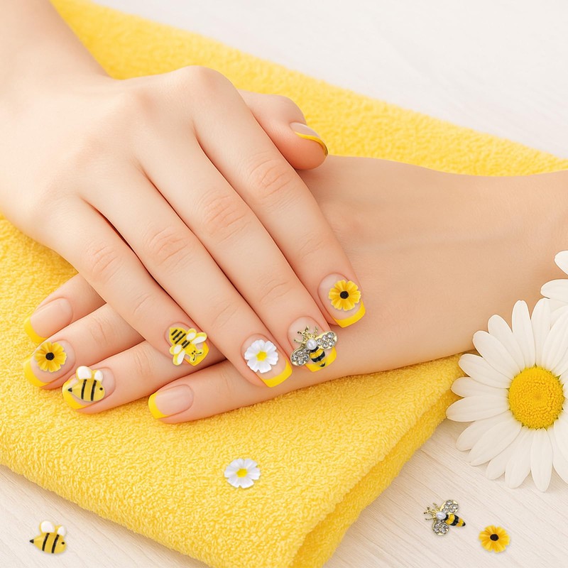 100 Stück Süße Nagel-Charms, Y2K Stil Biene & Gänseblümchen 3D Nagelsteine für Acryl, Gel, Press-On Nägel Schmuck Zubehör Deko