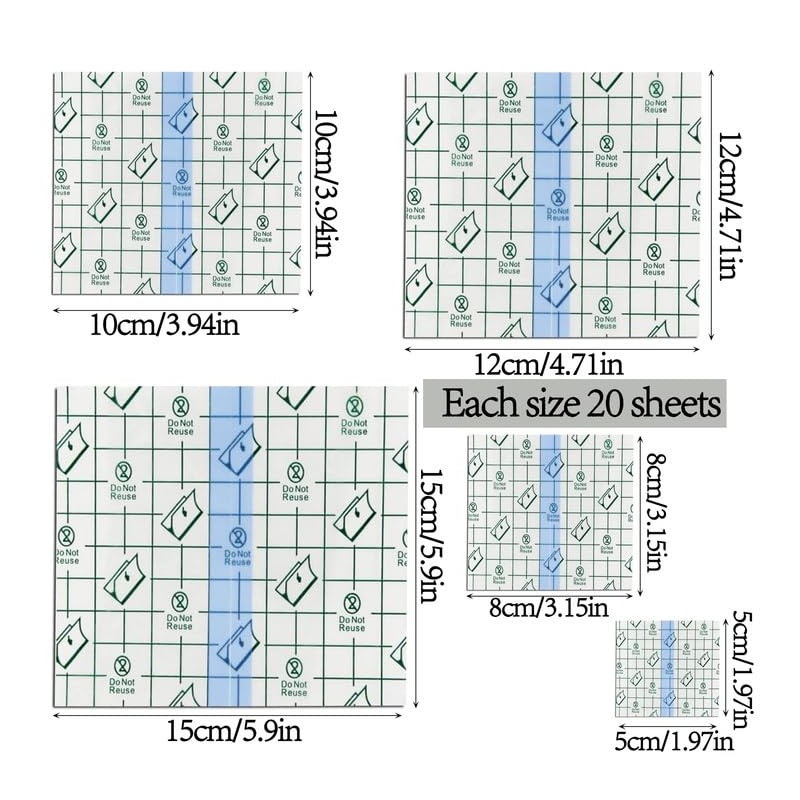 - 【Größe und Verpackung】: Sie erhalten 100 stück wasserdichte transparente Bandagen in 5-verschiedenen Größen, einschließlich 5x5cm, 8x8cm, 10x10cm, 12x12cm und 15x15cm. Die Kapazität der transparenten Folienbandage ist groß genug für Familie und Freunde zu verwenden.